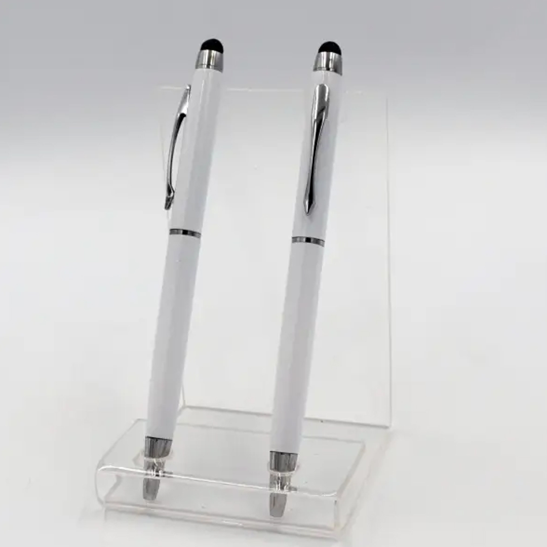 The Executive White Pen with Stylus combines elegance and functionality in one premium tool. Designed for professionals, this pen delivers smooth and consistent writing while also featuring a responsive stylus tip for touchscreen devices. Its sleek white finish and ergonomic design make it ideal for office use, meetings, or personal use. Durable and stylish, this pen ensures you stay productive while maintaining a sophisticated appearance. Perfect as a corporate gift or personal accessory, it merges style and practicality seamlessly.